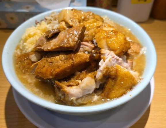 「豚と脂。」は、そのインパクトある店名の通り、“豚×脂×濃厚”を追求したガッツリ系ラーメンの専門店で、近年新木場エリアでも人気が高まっています。スープは豚骨と背脂の旨みを存分に抽出した濃厚豚骨で、レンゲを入れた瞬間に感じる“重厚な粘度”が特徴。豚の甘みと旨みがぎゅっと詰まっていながら、タレのキレが良いため、意外にも飲みやすいバランスを保っています。麺は極太のわしわし系で、噛むほどに小麦の香りが広がり、濃厚スープをしっかり受け止める存在感抜群のスタイル。トッピングの豚は分厚く柔らかく、食べ進むうちに“肉を食べている”満足感が高まっていきます。新木場でとにかくガツンといきたい日、エネルギーをチャージしたい日に最適な一杯です。