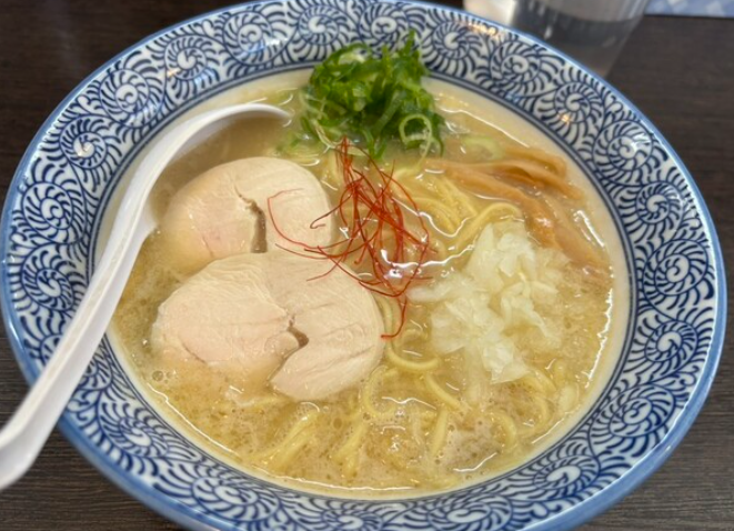 「麺匠なべすけ」は、鶏白湯やつけ麺など幅広いジャンルを提供する実力派で、特に鶏白湯の評価が高い人気店。スープは濃厚ながら臭みがなく、鶏の旨みがミルキーに広がるクリーミーな仕上がりで、口当たりは滑らか。麺は中細で食べやすく、スープの濃厚さに負けないコシがあります。チャーシューは鶏と豚の両方が提供されることも多く、どちらも低温調理でしっとりと柔らかい仕上がり。女性客にも人気の“やさしい濃厚系”です。