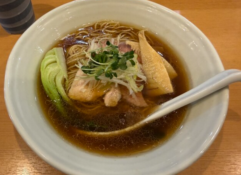 スープは鶏・煮干し・昆布などの旨みを丁寧に重ねた淡麗系で、ひと口すすった瞬間に鼻に抜ける香りが格別。麺は繊細な細麺で、のどごしの良さと小麦の風味が際立っています。チャーシューや穂先メンマも洗練されており、ラーメン全体の完成度は極めて高い“本格派の名作”です。