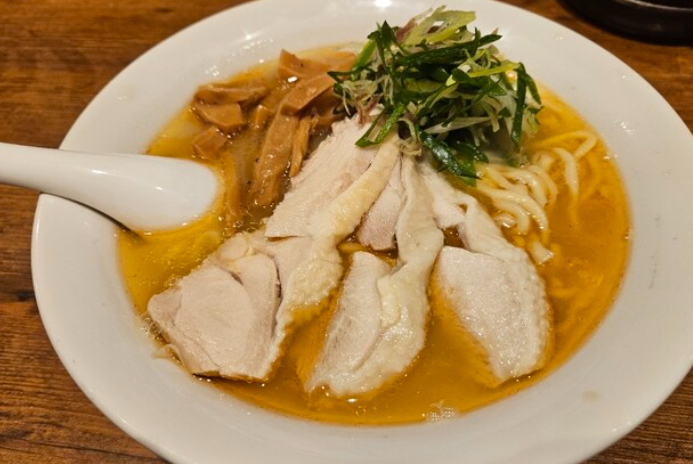 スープは透明度が高く、美しい黄金色ながら香味油・出汁・塩味のバランスが完璧で、一口目から“静かな衝撃”を与えるほどの完成度。麺は細く繊細で、スープを滑らかに連れてくる喉越しの良さが際立つ。チャーシューは肉質の良さと火入れの技術が光り、淡麗スープと見事に調和。“控えめなのに忘れられない味”を体現した稀有な名店です。