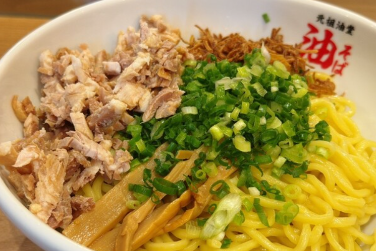 「元祖油堂」は、油そばの専門店の中でも特に旨味のバランスに優れた一杯を提供する人気店。特製ダレは醤油の香りと甘み、油のコクが絶妙に合わさり、混ぜるほどに味の深みが増す構成。麺は太めでもちもちとした食感が特徴で、タレがしっかり絡む力強さがあります。トッピングのチャーシューは香ばしく、細かく刻まれたネギや卵黄と絡めることで、さらに味の幅が広がる仕上がり。卓上の調味料で味変ができ、酢を加えると一気に軽やかになるなど、最後まで飽きのこない一杯。手早く満足したい忙しいビジネスパーソンにも人気の店です。