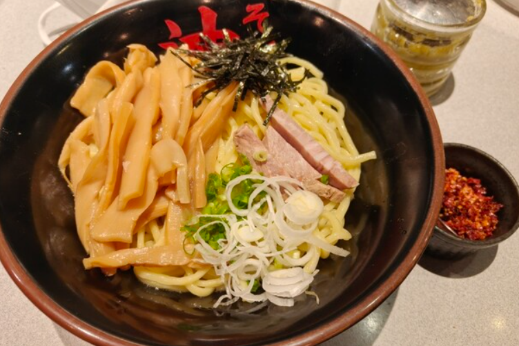 油そば専門店として全国的人気を誇る「東京油組総本店」の赤坂見附組。油そばの最大の魅力である“混ぜる楽しさ”を存分に味わえる構成で、食べ応えがありつつも重すぎないバランスが特徴です。特製醤油ダレは甘味・酸味・旨味が一体となり、食べ進めるほどクセになる味わい。麺はもっちりと弾力のある中太系で、タレと油をしっかり抱え込む力強いタイプ。トッピングのチャーシューは香ばしくカットされ、ネギと絡めれば一層風味豊かに。酢や辣油を加えることで味変も楽しめ、最後まで飽きることがありません。スープのない“新しいラーメン”として赤坂見附でも若い層に人気で、手早く満足感を得たいときに最適な一杯を提供してくれます。