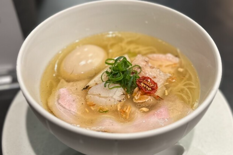 「Ramen 翡翠」は、見た目も美しい透明系スープが特徴のラーメン店。翡翠色に輝く澄んだスープは、鶏の旨味を軸に昆布や野菜の自然な甘みが重なり、口当たりが非常に柔らかく繊細な仕上がり。香りも上品で、食べ進めるたびにふわっと広がる出汁の風味が心地よい一杯です。麺は喉越しの良い細麺で、スープの透明感を損なわない軽やかな食べ心地。チャーシューは低温でじっくり調理されており、旨味を閉じ込めつつしっとり柔らかい食感が魅力です。トッピングには塩味控えめのメンマや香味野菜が添えられ、全体を通して清涼感のある味わいを楽しめます。赤坂見附で“癒し系のラーメン”を求める人におすすめしたい、丁寧で美しい一杯がここにあります。