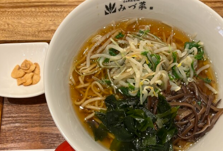 「みづ菜」は、素材を生かした自然派ラーメンが特徴の店。スープは鶏や節系の旨味を繊細に引き出しており、香り高く優しい味わいに仕上げられています。油分が控えめで飲み心地が良く、女性からの支持