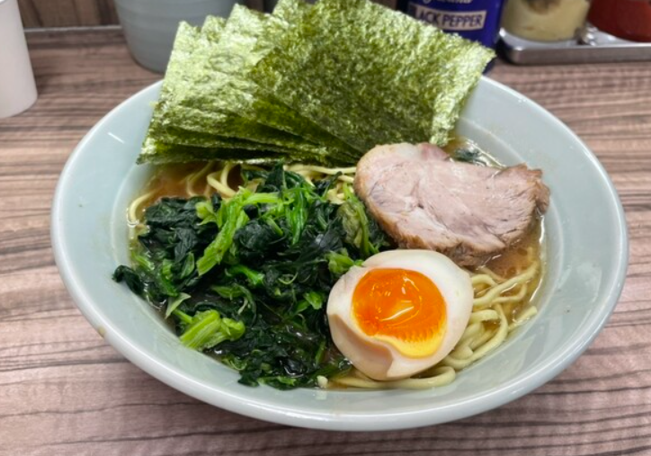 「二代目武道家」は、濃厚な家系ラーメンを提供する人気ブランドの一つで、パンチのある豚骨醤油スープが好きな人には外せない存在です。スープは高火力でじっくりと炊き込まれた豚骨をベースに、醤油ダレで力強いキレを加えた“ヘビー級”。レンゲを口に運ぶと、骨髄まで溶け込んだような濃厚なコクが舌にまとわりつきながらも、決して嫌な重さではなく“気持ちいい濃度”として感じられる絶妙な塩梅です。麺は家系らしい太ストレートで、短めにカットされているため、ガシガシと豪快にかき込むのが良く似合います。ライスとの相性は言うまでもなく抜群で、スープを染み込ませた海苔でご飯を巻いて食べれば、背徳感と幸福感が同時に押し寄せてくるでしょう。ほうれん草やチャーシューもボリュームがあり、がっつり食べたい日に全力で応えてくれる一軒です。