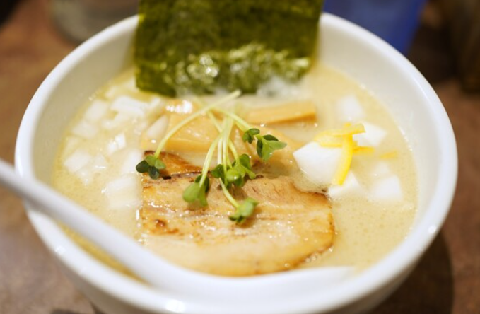 「NOODLE VOICE」は、池袋西口側の人気店で、要町からも徒歩圏内ということもあり、“少し足を伸ばしたい日に行きたい一杯”としてラーメン好きに知られています。看板メニューは、濃厚な鶏白湯にホタテなどの旨味を重ねた一杯など、インパクトのある創作系。白濁したスープを口に含むと、鶏のまろやかなコクが舌を包み込み、後からじわっと魚介由来の香りが追いかけてくる、密度の高い味わいです。