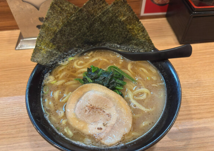 麺は家系らしい中太ストレートで、短め&ムチムチとした食感が特徴。スープをしっかり絡め取ってくれるので、ひとすすりごとの満足度が非常に高く、海苔で巻いてライスと一緒に頬張れば、もうそれだけで幸せになれる鉄板の組み合わせ。ほうれん草やチャーシューも定番どおりに盛られ、“これぞ家系”というビジュアルを完成させています。