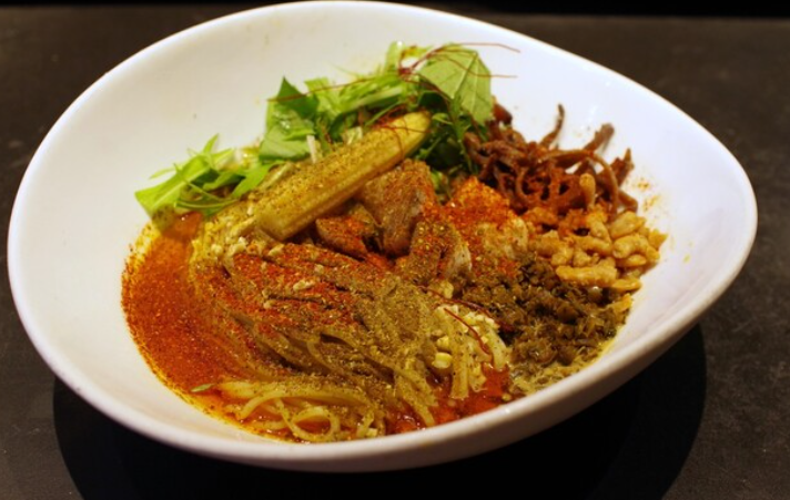 「タンタンタイガー 神楽坂店」は、江戸川橋からも徒歩圏内の人気担々麺専門店。特に汁なし担々麺で名高く、“痺れと辛さがくせになる一杯”を求めて多くの人が訪れます。麺の上には、挽き肉・ナッツ・香味野菜・香辛料などが色鮮やかに盛り付けられ、丼の底には、ゴマのコクと数種類のスパイス・花椒・辣油が合わさった濃厚なタレがスタンバイ。箸とレンゲでしっかり混ぜ合わせてから一口頬張れば、ビリビリと舌を刺激する花椒の痺れと、唐辛子のシャープな辛さ、そこにゴマのまろやかさが重なり合う、奥行きのある味わいが一気に広がります。
