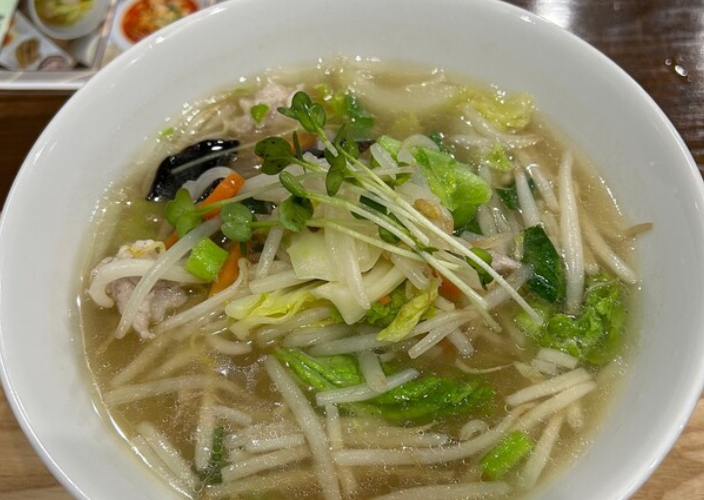 スープは塩ベースで、炒めた野菜から出る甘みと香ばしさが溶け込んだ、奥行きのある味わい。ひと口飲めば、キャベツやもやし、ニンジンなどの旨みがじんわり広がり、体の中からふっと力が抜けるような感覚になります。油分は控えめですが、野菜と出汁の旨みのおかげでまったく物足りなさはありません。