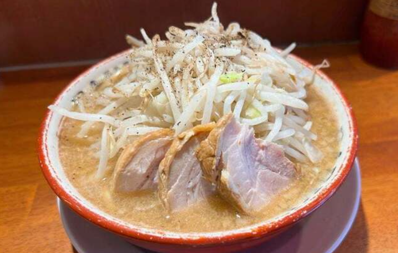 麺は極太でワシワシとした食感が特徴。山盛りのもやしやキャベツと一緒にわしわしと頬張ると、“噛む”という行為そのものが快感に変わっていきます。分厚いチャーシューも、しっかりした歯ごたえと肉の旨みを備え、丼全体の“肉々しさ”を底上げ。