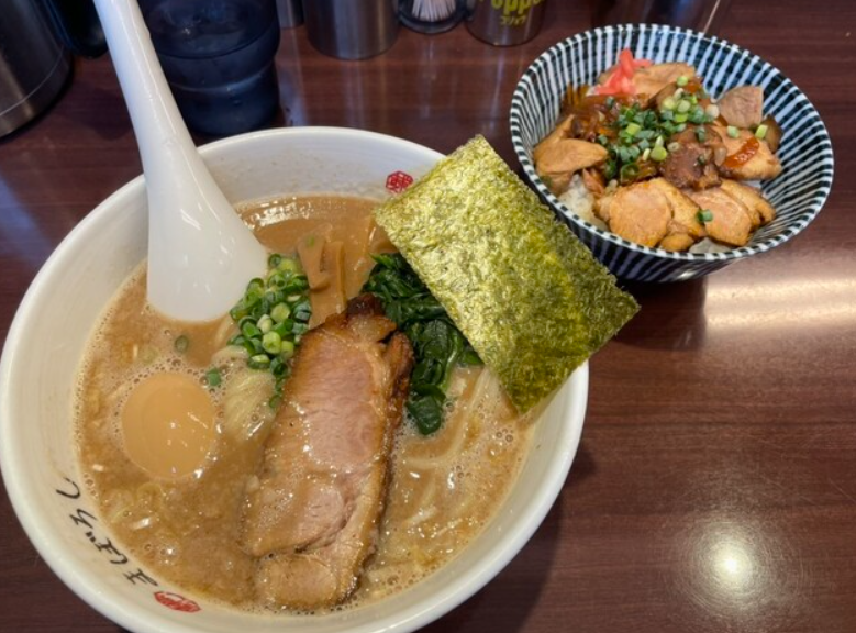 豚骨醤油らーめん まぼろしは、濃厚さと食べやすさを両立したラーメンが特徴の店です。豚骨のコクをしっかりと感じさせながらも、重すぎないスープ構成で、幅広い層に受け入れられています。醤油ダレとのバランスも良く、後味にくどさが残らない点が高評価につながっています。麺はスープに負けない存在感を持ち、啜り心地と噛みごたえの両方を楽しめます。濃厚系が好きだが、食後の重さは避けたいという人にとって、ちょうど良い落とし所の一杯と言えるでしょう。完成度の高さが評価点に表れています。