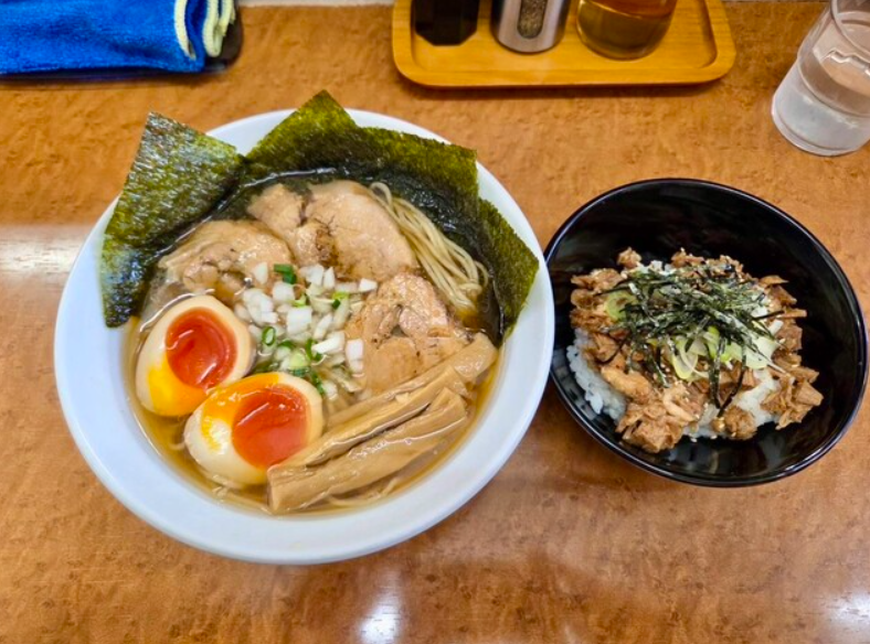 中華そば ひびきは、府中駅周辺の中でも非常に高い評価を獲得しているラーメン店で、レビュー件数と評価点の両面から見ても存在感のある一軒です。スープは醤油を軸にしながら、出汁の厚みと香りを丁寧に重ねた構成で、一口目から完成度の高さが伝わってきます。派手な濃厚さではなく、素材の旨味を引き出す方向性のため、飲み進めるほどに印象が深まります。麺はしなやかで、スープとの一体感を重視した設計になっており、啜り心地が良く、最後までストレスなく食べ進められます。トッピングも全体の流れを崩さず、味の調和を保つ役割に徹しています。評価点が非常に高い一方でこの順位に位置しているのは、府中駅エリア全体の層が厚く、好みの分散が起きやすいためです。しかし、淡麗系や完成度重視の中華そばを好む人にとっては、上位候補になり得る実力を持っています。府中駅で落ち着いて味を楽しみたい日に向いた店と言えるでしょう。