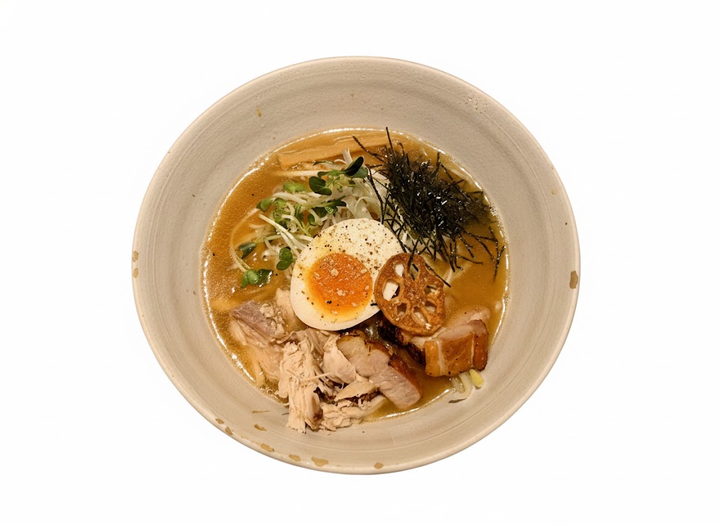 たけろくキッチン 清澄白河店は、独自性のあるアプローチで注目を集めているラーメン店です。スープは素材の旨味を活かした構成で、濃すぎず、それでいて物足りなさを感じさせない絶妙なバランスが取られています。ひと口目は穏やかですが、食べ進めるほどにコクと深みが広がり、完成度の高さを実感できます。麺はスープとの相性を重視した設計で、食感と風味のバランスが非常に良好です。トッピングも丁寧に作り込まれており、それぞれが役割を持って全体を支えています。カフェ文化の街・清澄白河にふさわしい、洗練された一杯を楽しめる店舗と言えるでしょう。