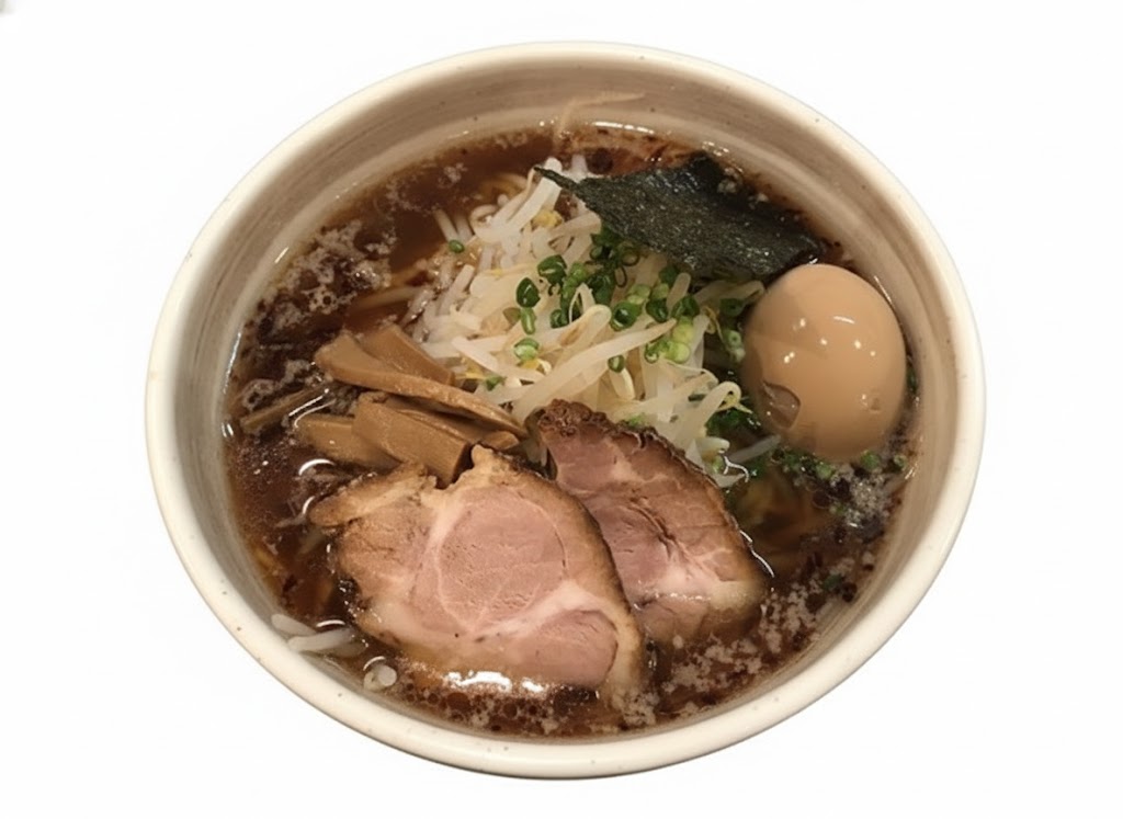 ラーメン大戦争 西新宿店は、関西発の人気ブランドとして知られ、インパクトのあるビジュアルと食べやすさを両立した一杯で支持を集めています。スープは動物系をベースにしながら、醤油のキレを効かせた設計となっており、濃厚すぎず、それでいて満足感のある味わいが特徴です。ひと口目から輪郭のはっきりした旨味が広がり、最後まで味の印象が崩れません。麺は中細ストレート麺を使用しており、スープとの絡みが良く、テンポよく食べ進められます。特徴的なチャーシューは柔らかく、食べ応えがあり、全体の満足度を高めています。西新宿五丁目で話題性と実用性を兼ね備えたラーメンを求める方にとって、十分に選択肢となる店舗です。