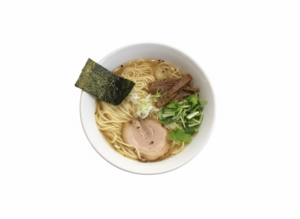 麺処 しろくろは、向原駅周辺で淡麗系とコクの両立を高次元で実現している実力派ラーメン店です。スープは動物系をベースにしながら、魚介の旨味や香味を丁寧に重ね、ひと口目から澄んだ印象と奥行きのある味わいを同時に感じさせます。過度な主張はなく、しかし決して薄味ではない設計のため、食べ進めるほどに完成度の高さが伝わってきます。麺は中細麺でスープとの一体感が非常に高く、啜るたびに香りと旨味が自然に広がります。向原という落ち着いた街にふさわしい、静かに満足度を積み重ねるタイプの一軒です。