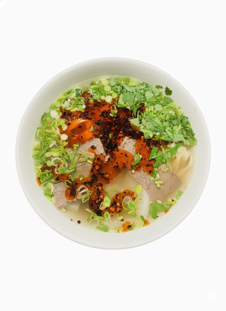 馬子禄牛肉面 神保町店は、神保町駅周辺のラーメンシーンにおいて明確に異色の存在であり、中華圏の牛肉麺文化をそのまま持ち込んだような一杯で高い評価を受けています。スープは牛骨や香辛料をベースにした深みのある味わいで、一般的な日本のラーメンとは異なる方向性を持ちながらも、非常に完成度が高く、食べ進めるほどに旨みが染み渡ります。香りやスパイス感が強すぎないよう絶妙に調整されており、日本人の舌にも自然に馴染む設計となっています。麺とスープ、そして牛肉の一体感は非常に高く、ラーメンという枠を超えた「麺料理」としての満足感があります。多様性を受け入れてきた神保町だからこそ、高く評価されている一軒です。