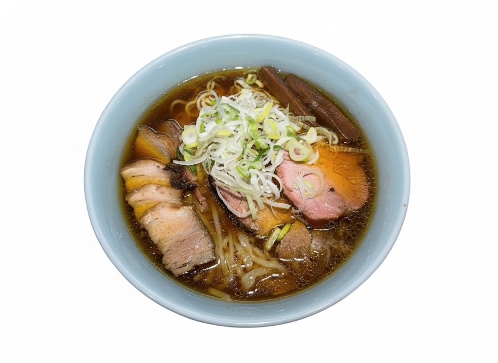 麺浪漫 背脂豚骨醬油らーめん専門店は、千石駅周辺において最も明確なコンセプトと完成度を兼ね備えた存在であり、「背脂豚骨醤油」というジャンルを真正面から突き詰めた一杯で高い支持を集めています。スープは豚骨のコクを土台に、背脂の甘みと醤油ダレの輪郭が幾重にも重なり、一口目から分かりやすい濃厚さを提示しつつ、ただ重たいだけで終わらないよう丁寧に設計されています。背脂は量が多めでも嫌な脂っこさが残りにくく、旨みとしてスープに溶け込むため、食べ進めるほどに中毒性が増していく構成です。麺はこの濃厚なスープをしっかり受け止める存在感を備えており、噛むたびに小麦の風味とスープのコクが同時に広がります。住宅街という立地にありながら、ここまで攻めた濃厚系が高評価を得ているのは、単なるインパクトではなく、完成度と再現性が伴っているからこそであり、千石駅を代表する一杯として納得感のある存在です。