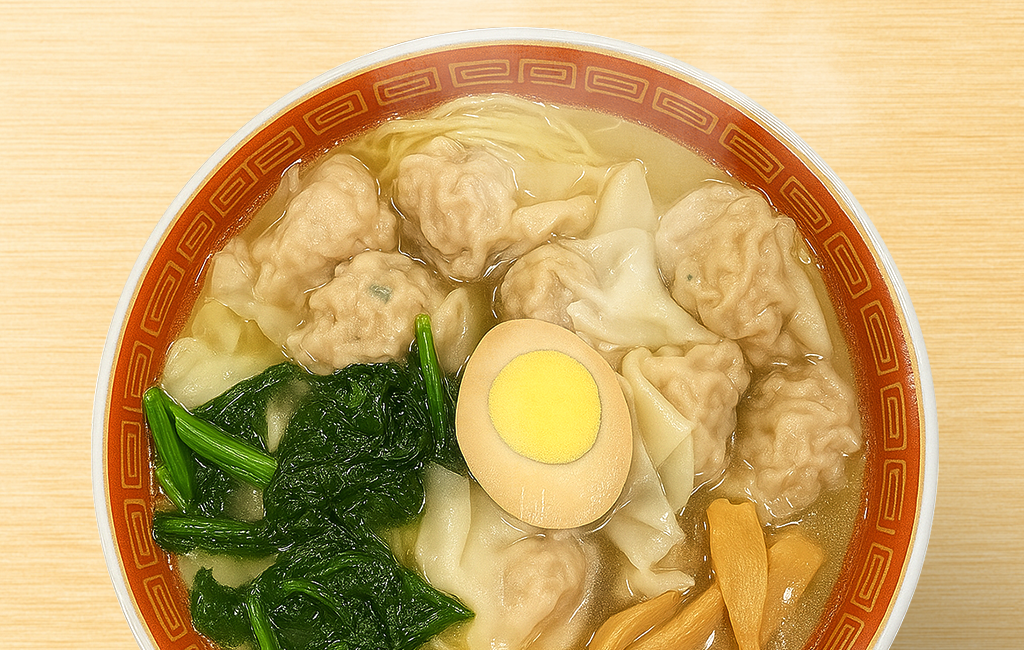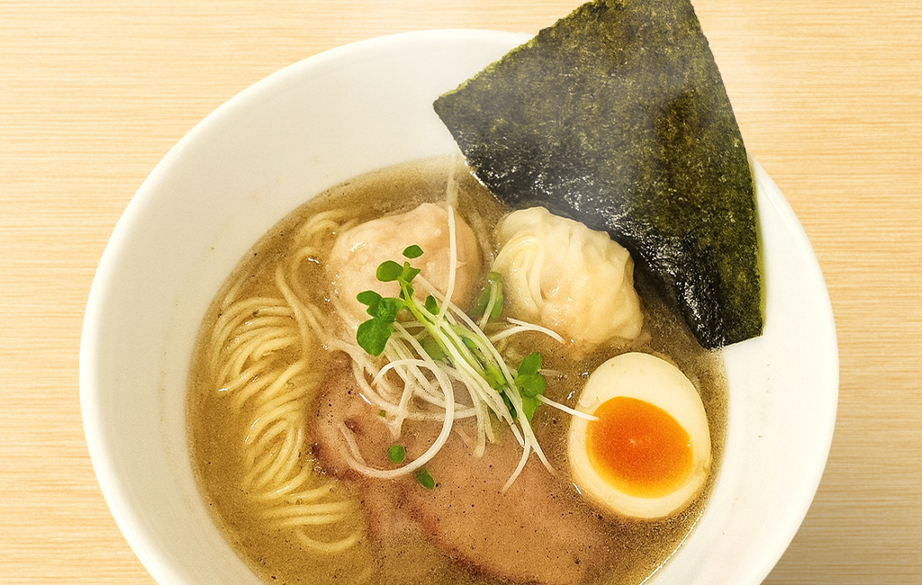 「広州市場 田町タワー店」は、モチモチの自家製ワンタンを看板に掲げる人気中華麺店。ムスブ田町店と並ぶ系列店で、こちらも「手包みわんたん麺」が一番人気です。透き通った清湯スープは鶏ガラベースで、あっさりとしながらもコク深く、毎日食べても飽きない味わい。ワンタンは皮が薄めでツルリとした喉ごしが特徴で、中の餡は肉汁たっぷりでジューシー。麺は細ストレートでスープと一体感があり、ワンタンとの相性も抜群です。卓上の「塩ダレ」「柚子胡椒」「自家製ラー油」で味変を楽しめるのも魅力。口コミでは「ワンタンが主役の珍しいラーメン」「軽めなのに満足感がある」と好評。仕事帰りや女性一人でも気軽に立ち寄れる雰囲気のお店です。