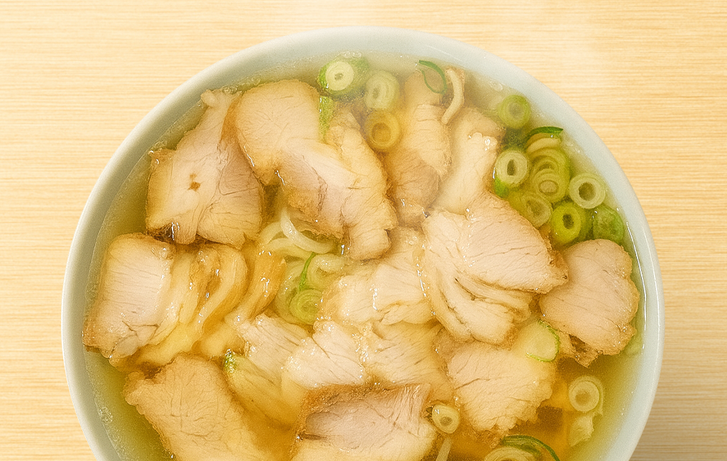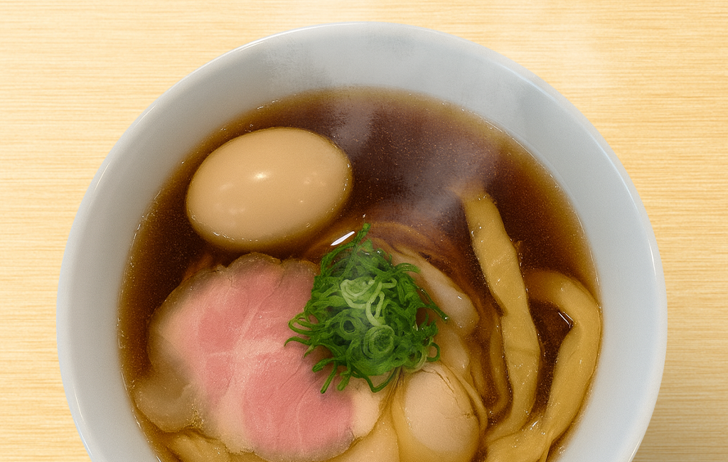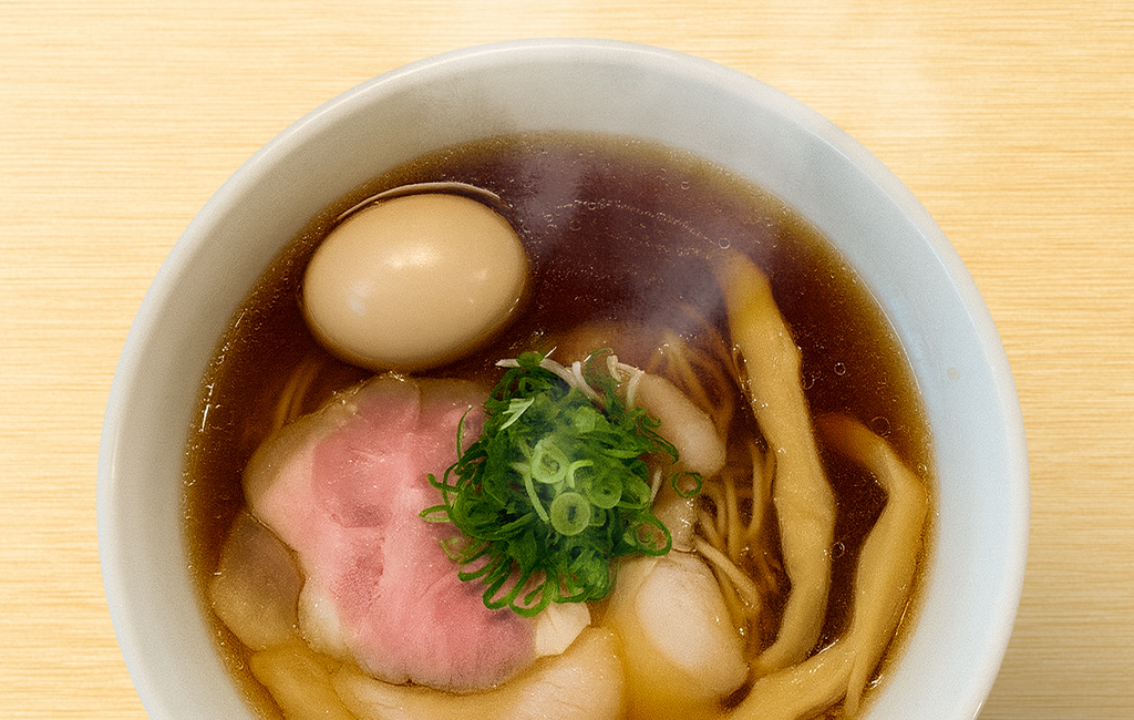 「麺屋 おやゆび」は、落ち着いた雰囲気の中で丁寧に作られたラーメンを味わえる実力派の一軒。看板メニューは「醤油ラーメン」で、丸鶏や煮干しをじっくり煮出したスープはあっさりとしつつも奥深い旨味が感じられ、最後の一滴まで飲み干したくなる仕上がりです。麺は中細ストレートで、しなやかなコシとスープとの相性が抜群。トッピングには豚と鶏の2種類のチャーシューがのり、それぞれの旨味を楽しめるのも魅力です。さらに味玉やメンマなど細部まで丁寧に作られており、全体の完成度を高めています。口コミでは「優しい味わいでホッとする」「素材を活かしたバランスの良いラーメン」と評判。派手さはないものの、通うほどに良さがわかる名店です。