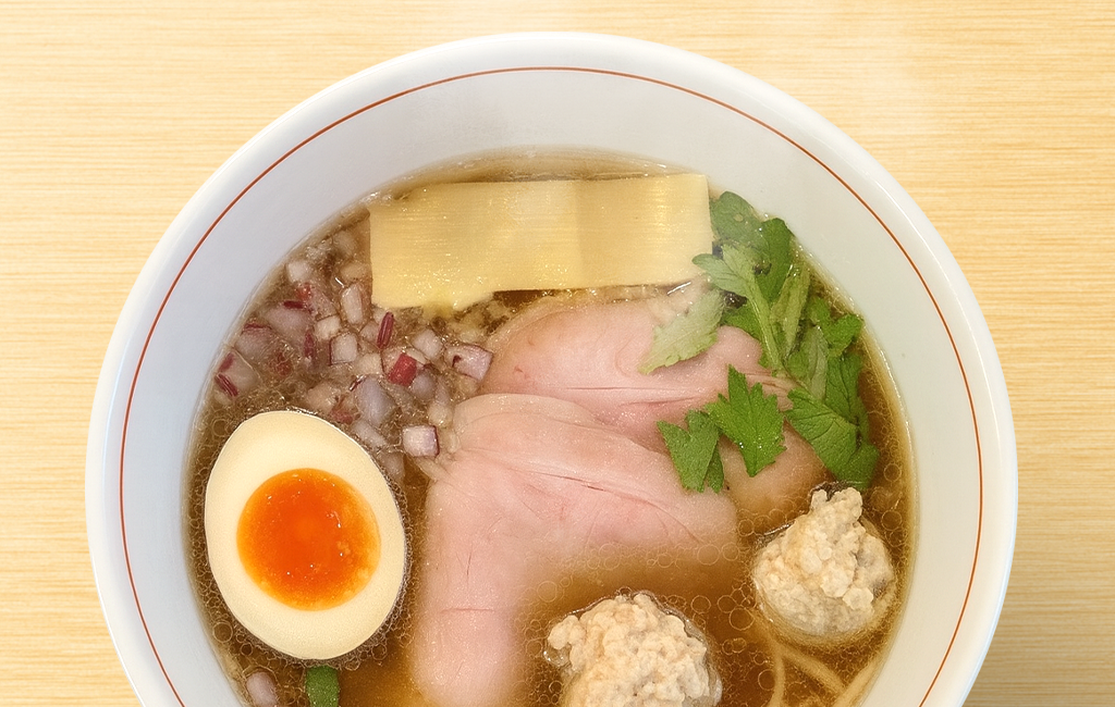 「貝そば もぉむ」は、田町で注目を集める新進気鋭のラーメン店。看板メニューは「貝そば」で、あさりやはまぐりなど数種類の貝を贅沢に使ったスープが特徴です。ひと口すすると、貝の旨味と香りが口いっぱいに広がり、透明感のある味わいながらも奥深さを感じさせます。麺は細めのストレートで、スープと一体感があり喉越しも抜群。トッピングのチャーシューは低温調理でしっとり柔らかく、貝の風味を引き立てる上品な仕上がりです。限定メニューとして「貝つけそば」や「季節の貝そば」も人気で、常連客を飽きさせません。口コミでは「東京でここまで貝を前面に出したラーメンは珍しい」「優しくも力強い一杯」と高評価。あっさり系が好きな方や女性にもおすすめの名店です。