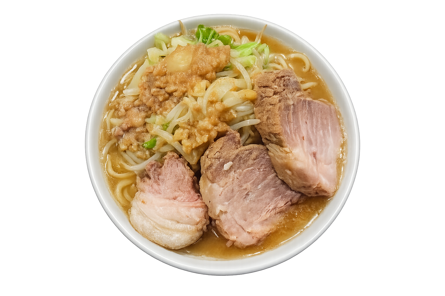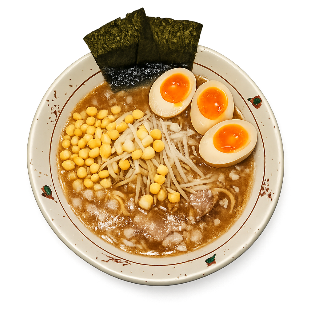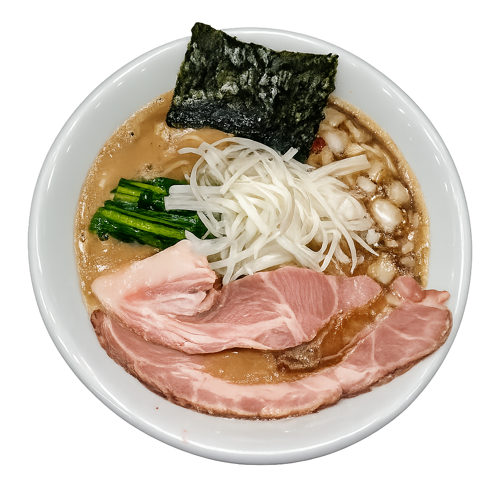 国分寺駅北口から徒歩約5分。「豚ノヴァ」は、人気二郎系ラーメン店「豚星。」のDNAを受け継ぐインスパイア系として注目される一軒です。修行先は「富士丸」「D麺」と、いずれも名店揃いで、その系譜を受け継ぐ本格派として期待が高まっています。300gの麺量に加えて、分厚いホロホロの豚チャーシューがどんと二枚乗る豪快なビジュアルと、無料トッピングでヤサイ・アブラ・ニンニク・背脂を好みで増せるカスタマイズ性も魅力。学生からガッツリ派まで、幅広い層に支持されるパワー系ラーメンが魅力です。