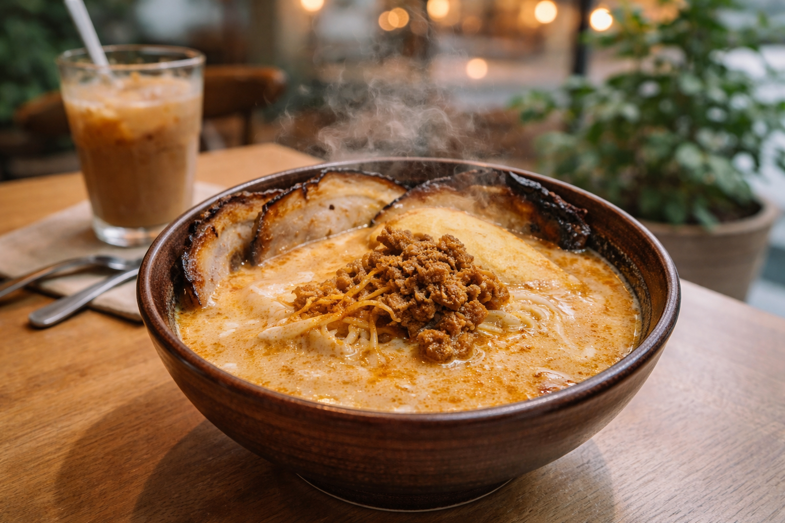 全国展開する「田所商店」が、両国の江戸NORENに構える店舗です。味噌ラーメン専門店として知られ、北海道・信州・九州といった各地の味噌を使い分けたバリエーション豊かなメニューが魅力。特に北海道味噌の濃厚で力強いスープは人気が高く、太めの麺との相性も抜群です。トッピングも豊富で、味噌漬けチャーシューや炒め野菜などがボリュームたっぷり。観光ついでに立ち寄れる立地の良さもあり、常に多くの人で賑わっています。