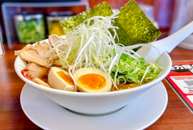 「京都北白川ラーメン魁力屋 越谷店」は、京都発の背脂醤油ラーメン専門店。あっさりとした醤油スープに背脂が程よく浮かび、コクとまろやかさを同時に楽しめます。麺は中細ストレートでスープとの絡みが抜群。チャーシューや九条ネギを使ったトッピングが人気で、食感や香りも楽しめます。店内はカウンター席とテーブル席があり、家族連れや友人同士でも利用しやすい雰囲気です。口コミでは「背脂の甘みがクセになる」「ネギたっぷりで美味しい」と評判で、京都ラーメンの味を手軽に楽しみたい方におすすめの一軒です。
