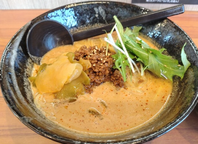 「麺処 ごまや 越谷レイクタウン店」は、香ばしいごまの風味が特徴のラーメン店です。濃厚ながらもまろやかなスープは、ごまの香りとコクが絶妙にマッチし、太めのもちもち麺との相性も抜群。チャーシューやメンマ、青ネギなど、トッピングも丁寧に仕上げられ、見た目にも華やかです。店内はカウンター席を中心に落ち着いた雰囲気で、一人でも家族連れでも気軽に訪れることができます。口コミでは「ごまの香りが食欲をそそる」「濃厚だけど最後まで飲み干せる」と高評価です。