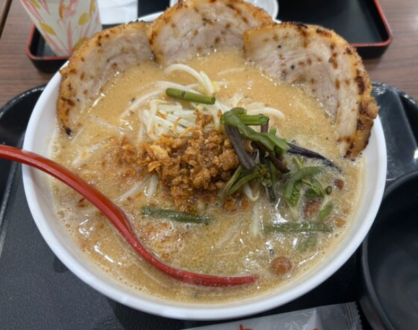 「麺場 田所商店 イオンレイクタウン店」は、味噌ラーメン専門の人気チェーン店で、北海道味噌、信州味噌、九州味噌など地域ごとの味噌を使ったラーメンを楽しめます。麺は中太ちぢれ麺で、濃厚な味噌スープと絡みやすく、トッピングのチャーシューやもやしとの相性も抜群です。店内はフードコート形式で、買い物途中でも立ち寄りやすいのが魅力。口コミでは「味噌ラーメンが本格的」「スープのコクが深い」と高評価ですが、一部「少し濃い味」との声もあります。本格味噌ラーメンを気軽に楽しみたい方におすすめです。