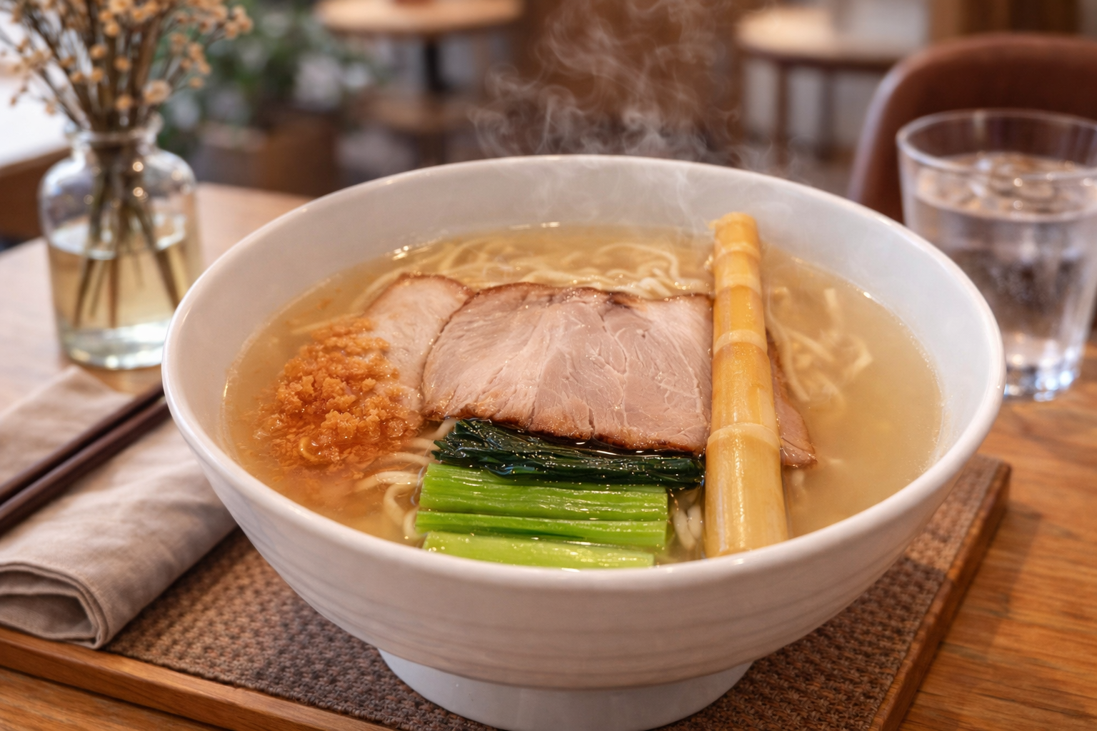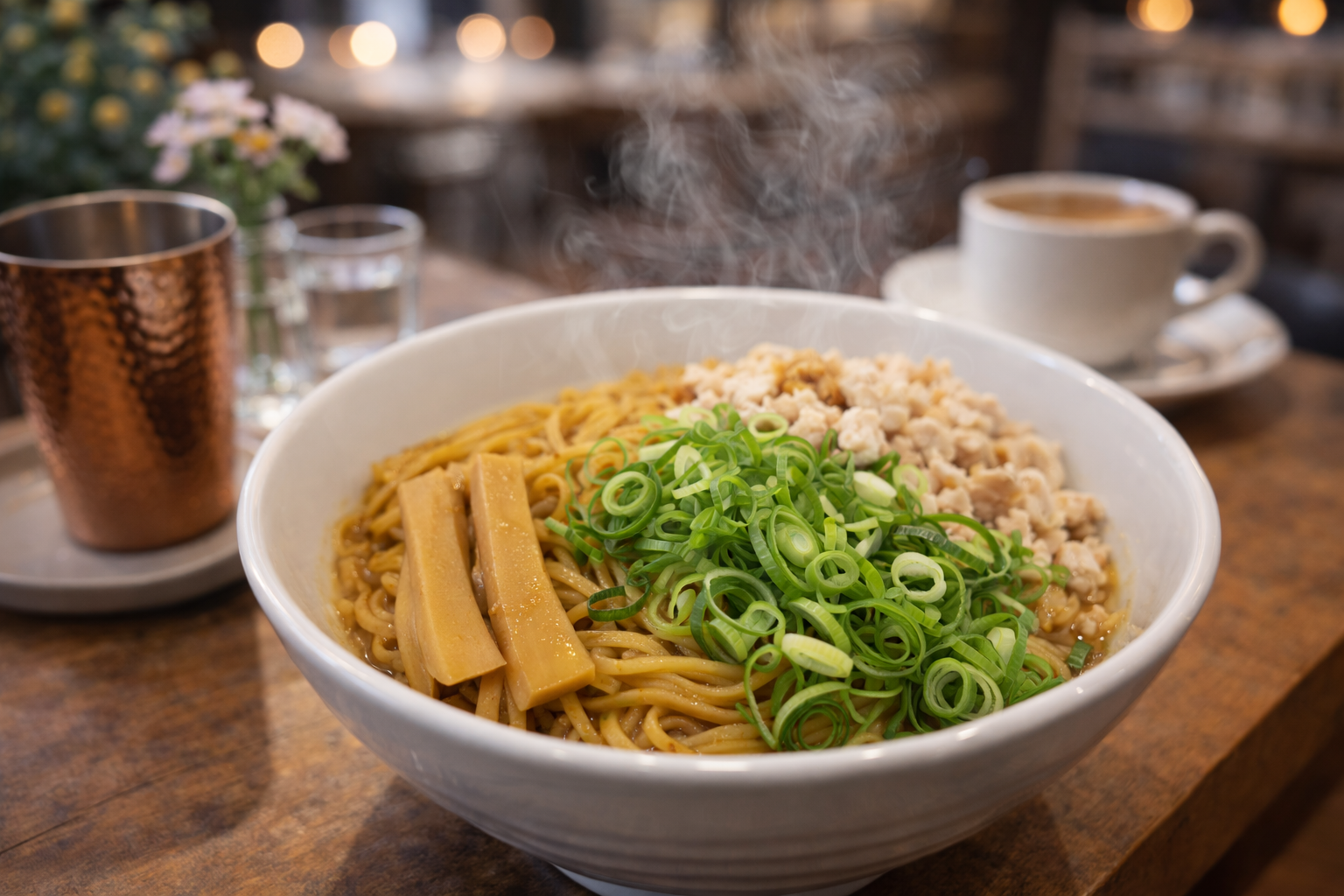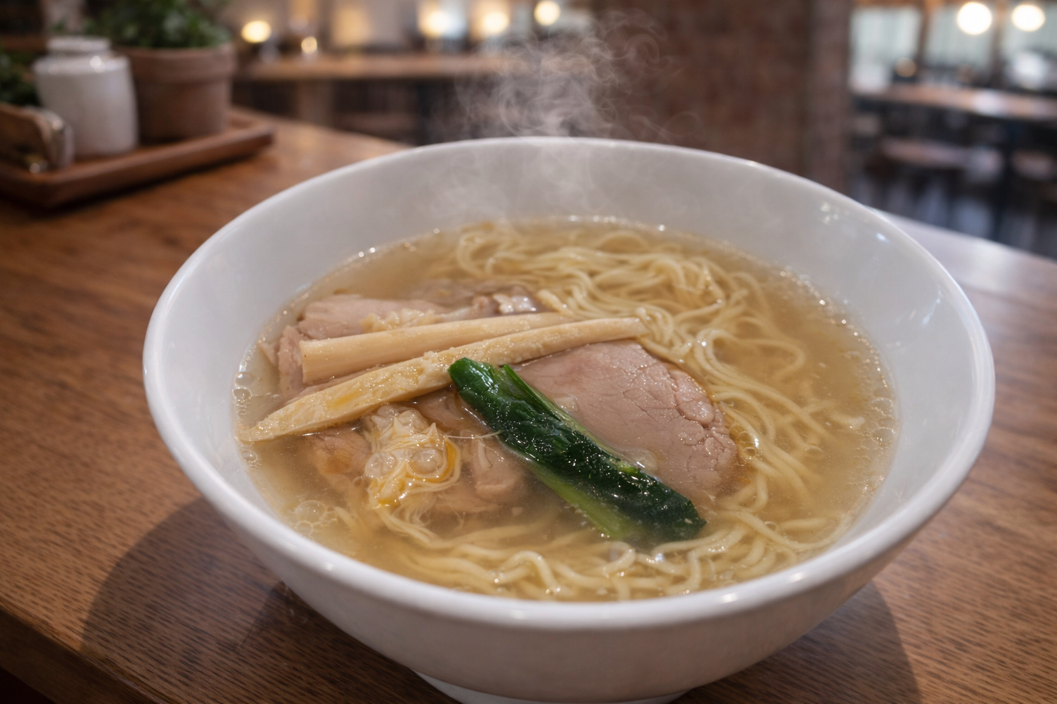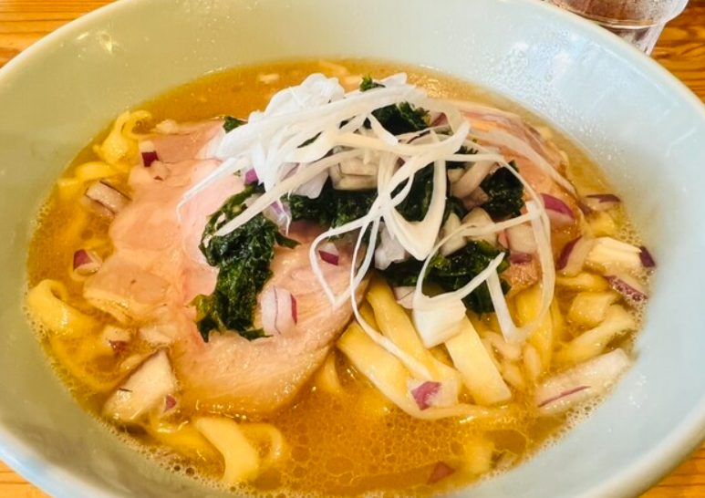 「Ramen Base 046」は、ラーメン好きの隠れスポットとして注目される小規模店。スープは醤油を中心に、香味野菜と動物系の旨味を丁寧に引き出した一杯で、シンプルながら奥深い味わいが楽しめます。麺は中細タイプで喉越し良く、軽やかな食感。口コミでは「落ち着いた雰囲気で食べられる」「店主のこだわりを感じる」と高評価。まだ知名度は低いながら、ラーメン好きなら訪れておきたい穴場的存在です。