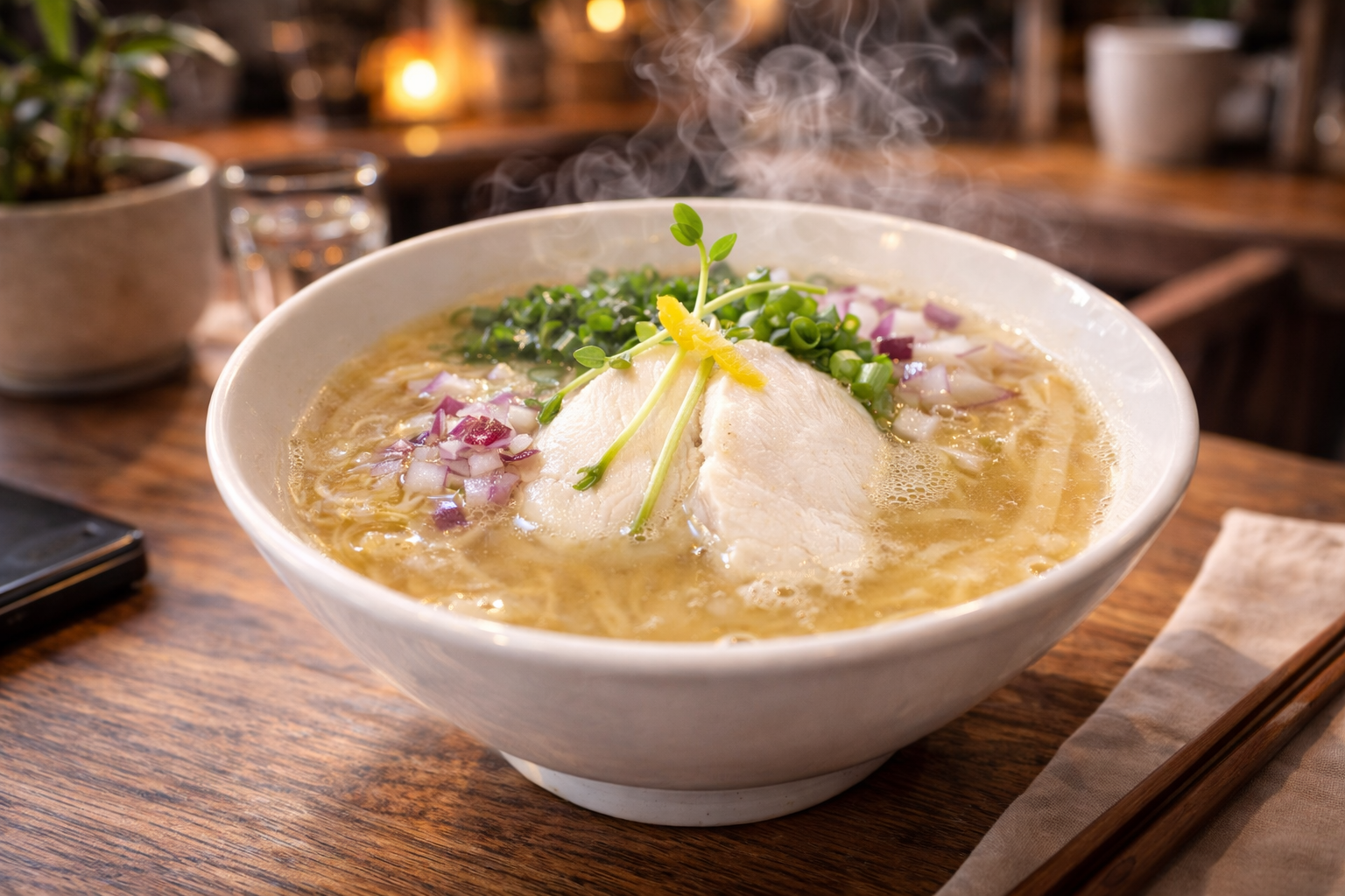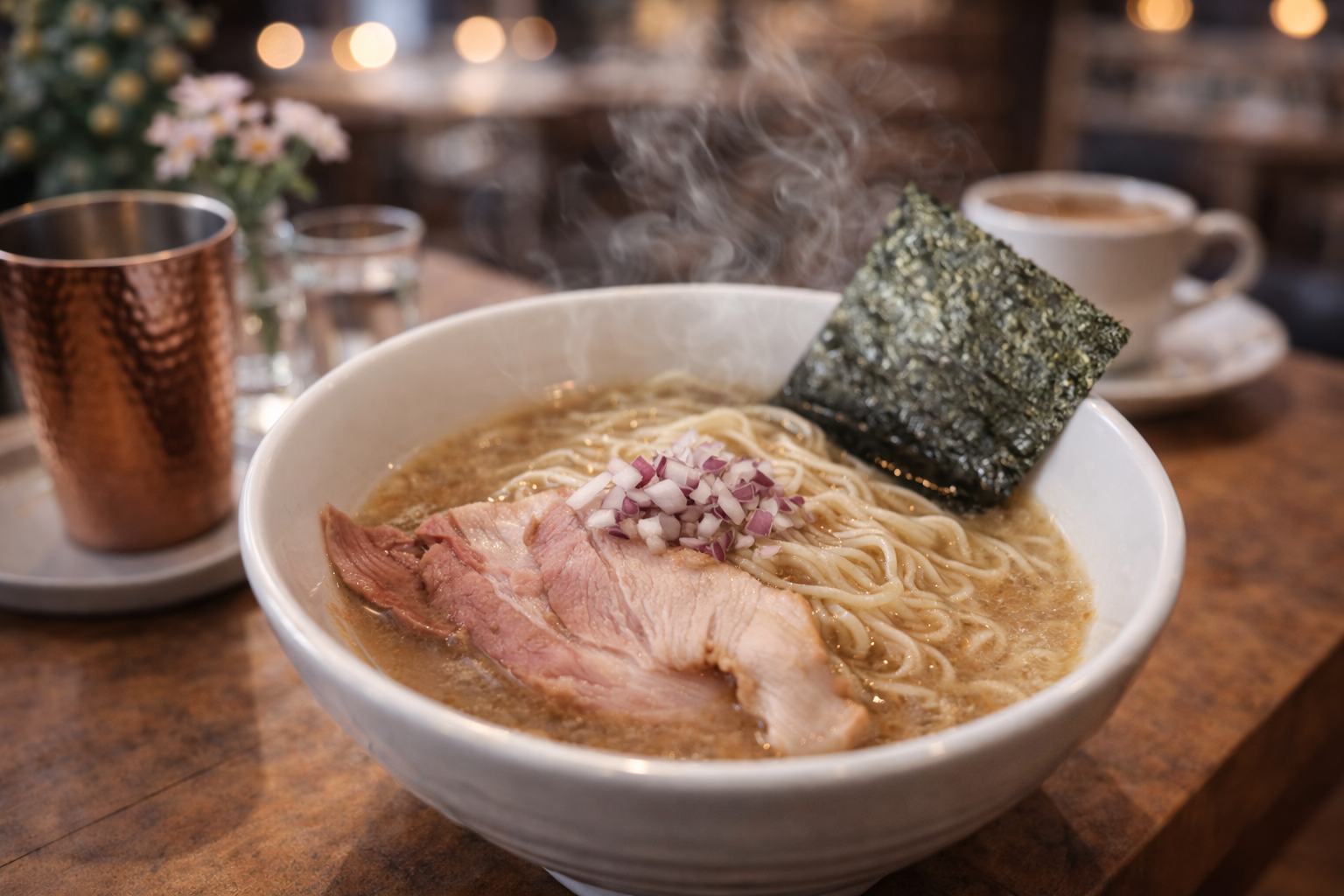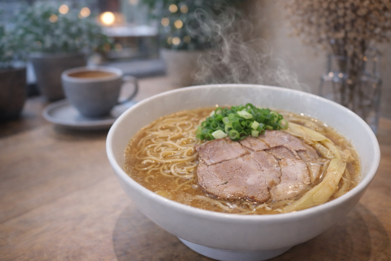 「Ramen Base 046」は、ラーメン好きの隠れスポットとして注目される小規模店。スープは醤油を中心に、香味野菜と動物系の旨味を丁寧に引き出した一杯で、シンプルながら奥深い味わいが楽しめます。麺は中細タイプで喉越し良く、軽やかな食感。口コミでは「落ち着いた雰囲気で食べられる」「店主のこだわりを感じる」と高評価。まだ知名度は低いながら、ラーメン好きなら訪れておきたい穴場的存在です。