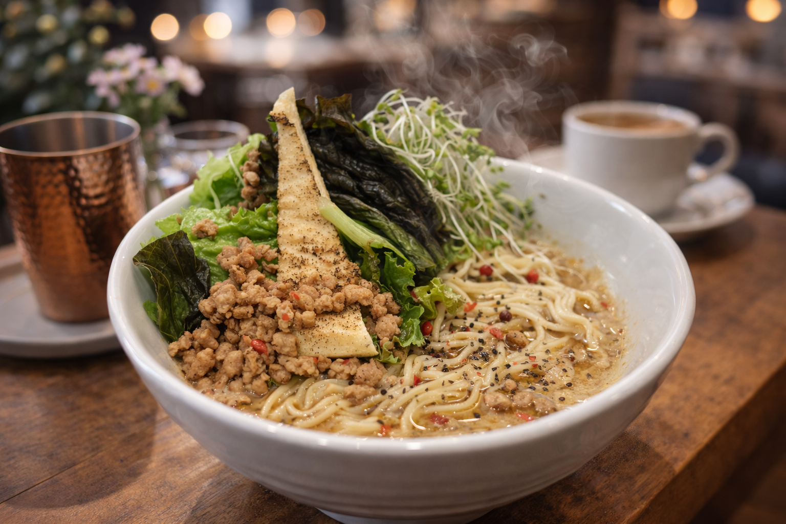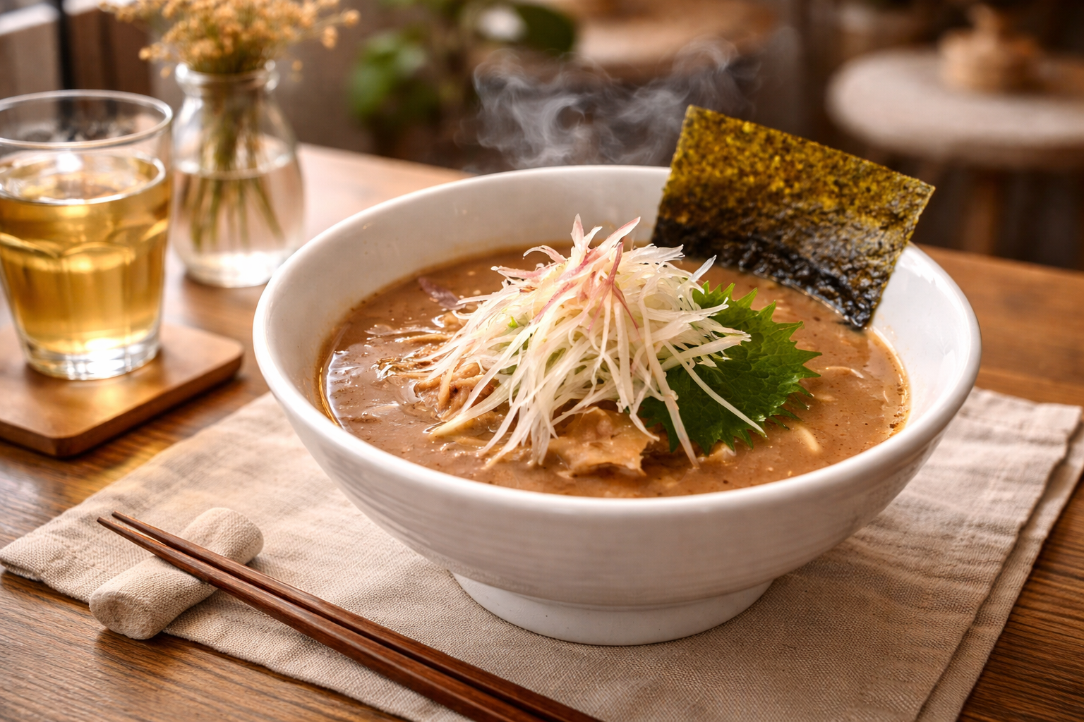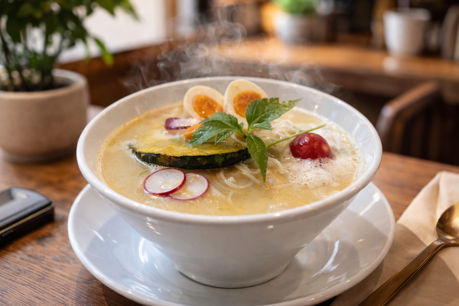 「御成横丁」は、寿司とラーメン、さらにヴィーガン対応まで揃えるユニークなスタイルで注目されている人気店。ラーメンは魚介や野菜をベースにした淡麗系スープが中心で、素材の旨味をしっかりと感じられるヘルシーな仕上がり。寿司とセットで楽しめるコースもあり、観光客から地元の常連客まで幅広く支持を集めています。さらにヴィーガンラーメンを提供している点も大きな特徴で、健康志向の方や海外からの旅行者にも人気。口コミでは「新しい食のスタイル」「おしゃれで居心地が良い」と絶賛されており、鎌倉の多様な食文化を象徴する一軒です。