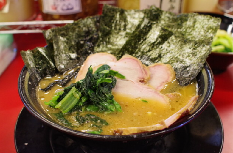 千葉を代表する家系ラーメンの名門「王道家」。濃厚な豚骨醤油スープは深いコクとキレがあり、極太麺との相性も抜群。トッピングの海苔やほうれん草と一緒にライスを合わせるのが王道の食べ方です。家系好きなら外せない名店です。