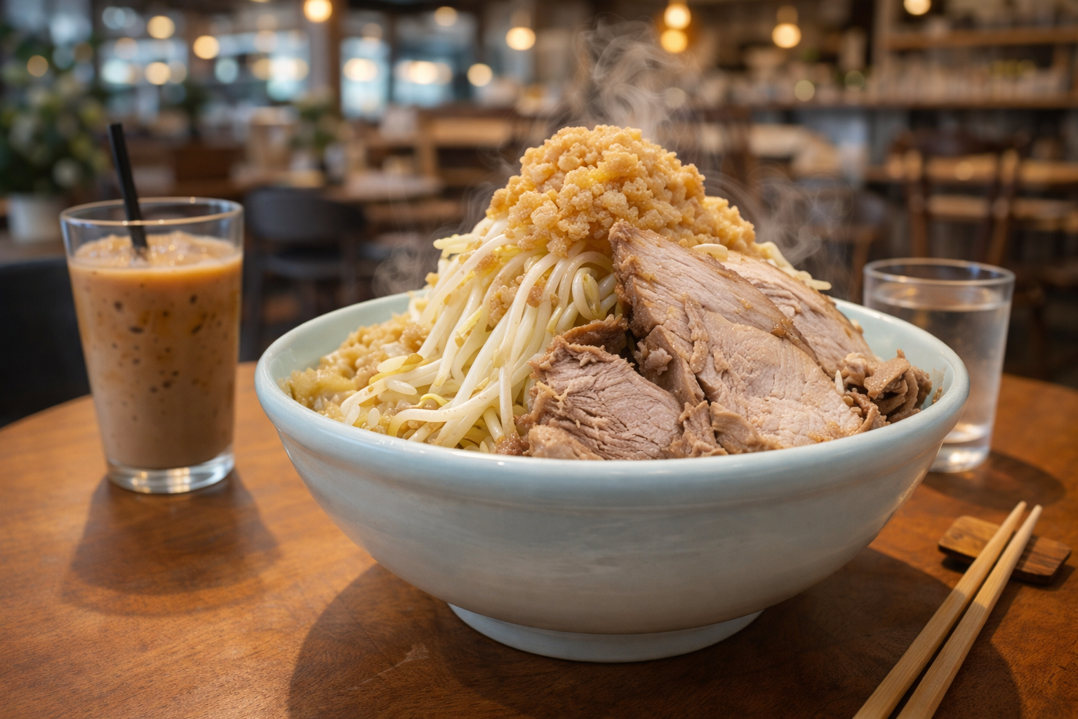 ボリューム満点の二郎系インスパイアが人気の「勢拉」。山盛りの野菜、極太麺、濃厚スープで満腹必至。がっつり食べたい学生や若者に支持されています。ニンニクや脂のカスタマイズも可能で、自分好みの一杯を楽しめます。