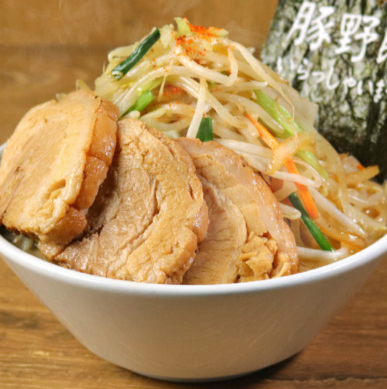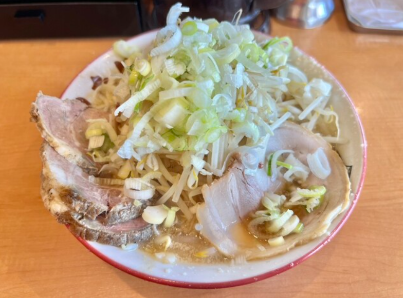 二郎系インスパイアとして有名な「野郎ラーメン」。極太麺に濃厚スープ、山盛りの野菜とチャーシューで食べ応え満点。ガッツリ派におすすめの一軒で、ボリュームを求める学生や若者に人気があります。