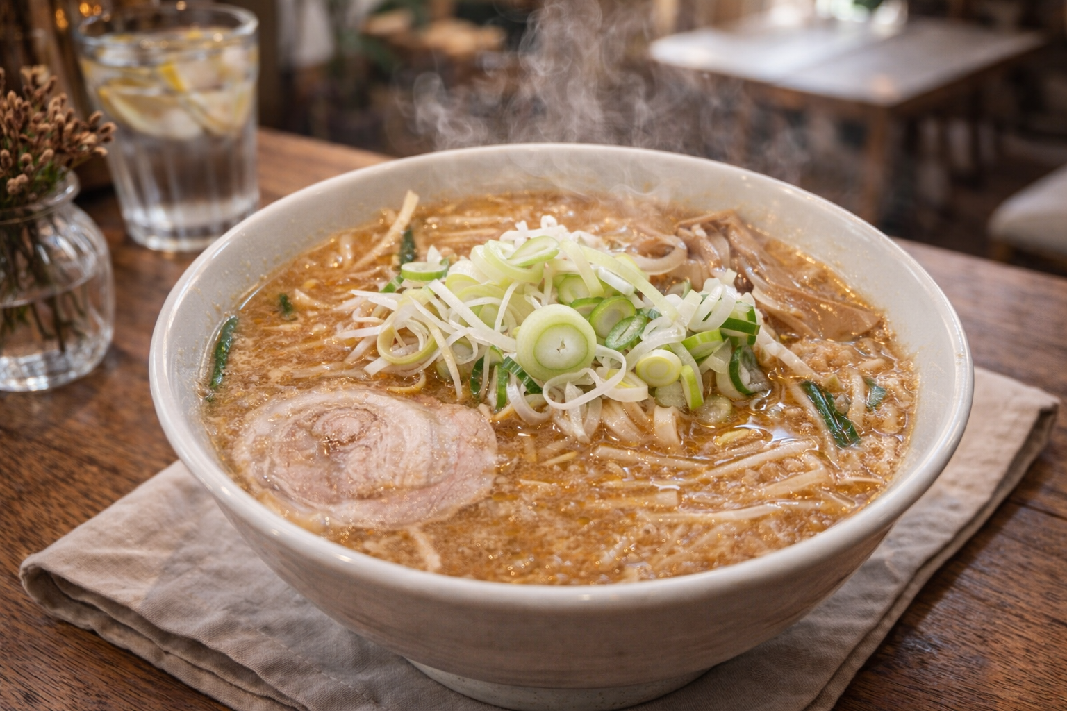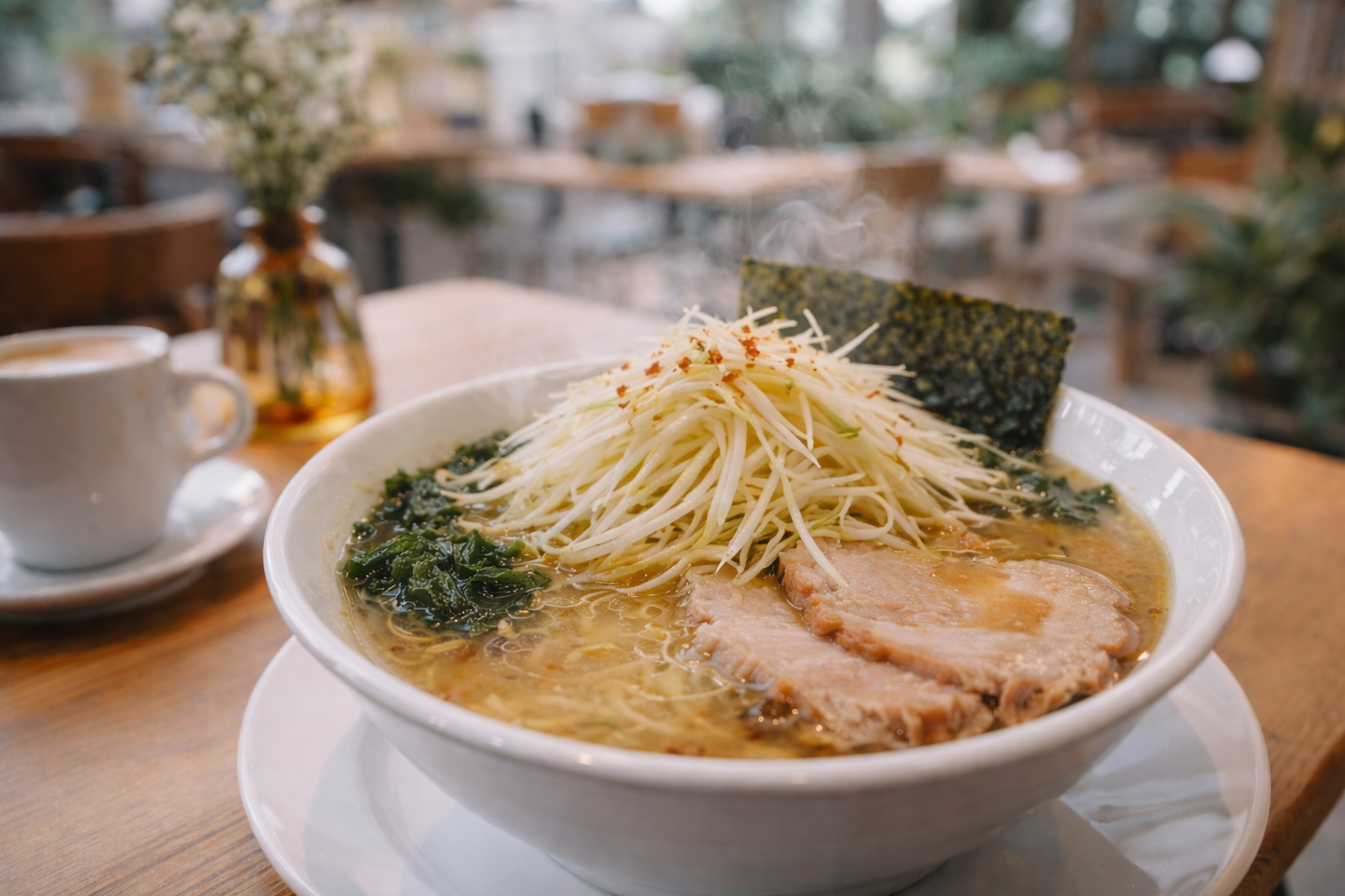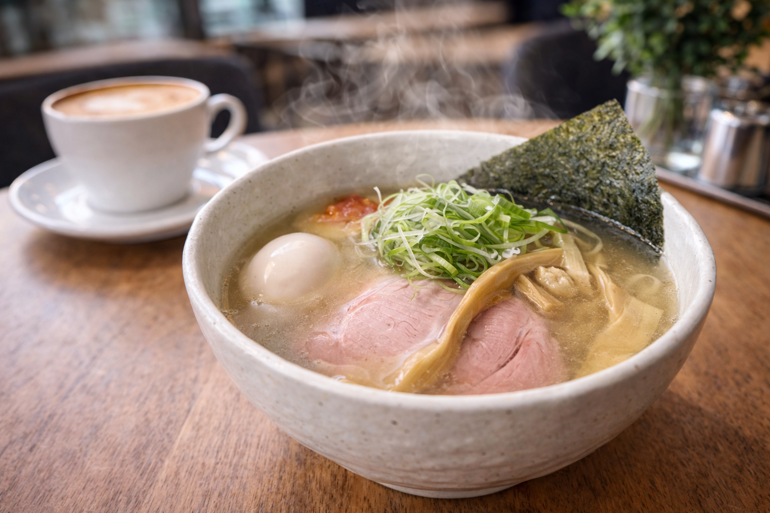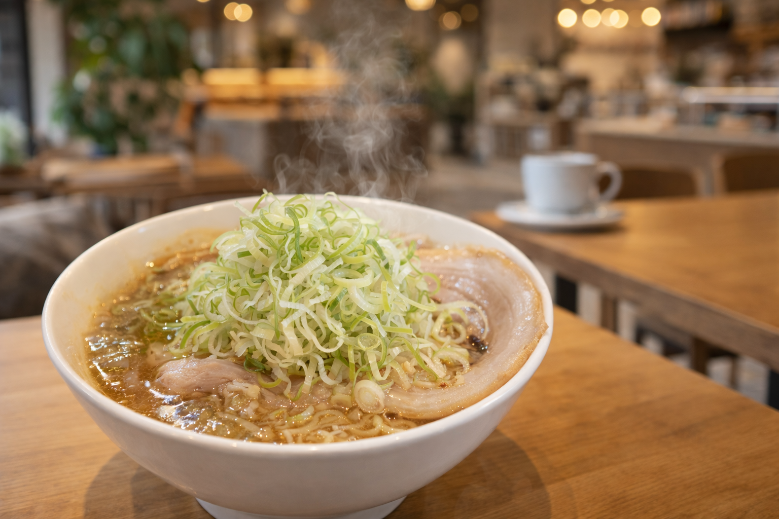 創作系ラーメンを提供する注目店。魚介や野菜を使ったスープは独創的で、他では味わえないオリジナルの一杯が楽しめます。店内は落ち着いた雰囲気で、女性客やカップルにも人気があります。