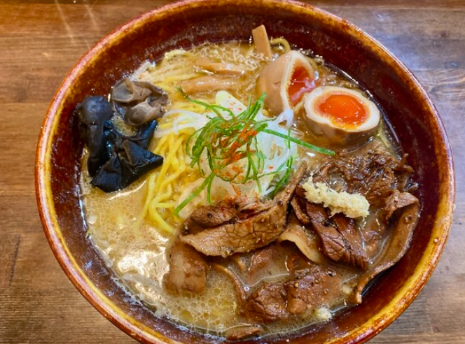 「炙り味噌ラーメン」で知られる人気店。味噌の香ばしさと濃厚な旨味が特徴で、表面に張られたラードが最後まで熱々の状態を保ちます。チャーシューは分厚く、炙られた香ばしさが食欲をそそります。観光客に人気が高く、夜も遅くまで営業しているのが魅力。