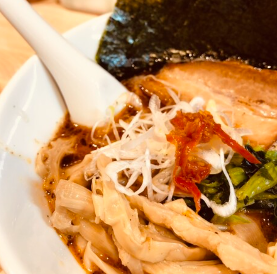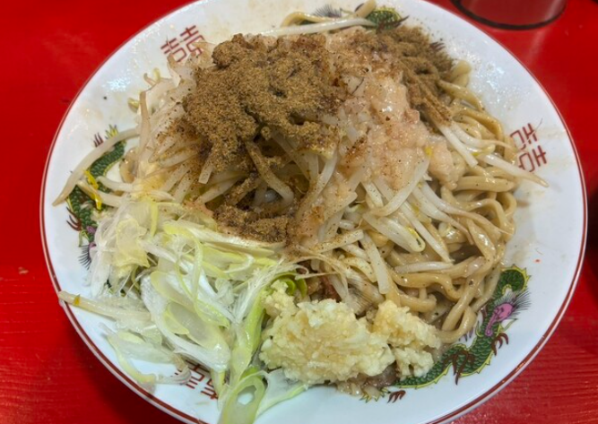 ボリューム満点のまぜそばが楽しめる「一真亭」。特製ダレと太麺を絡め、ガッツリ系トッピングを加えた一杯は、学生や若者に特に人気です。にんにくや辛味を加えて味変も楽しめ、最後まで飽きずに食べられるのも魅力。ラーメンではなく“まぜそば”をメインに掲げるスタイルが、南千住の中でも異彩を放つ存在です。