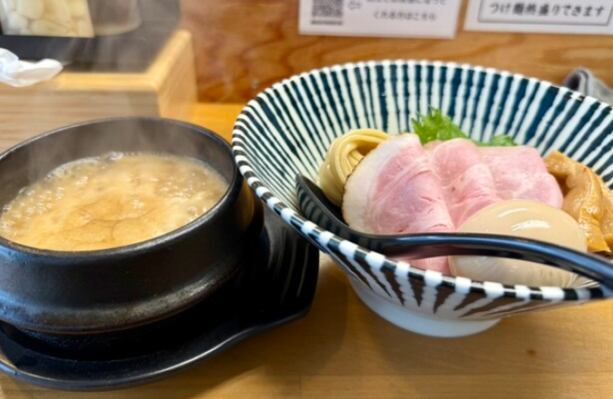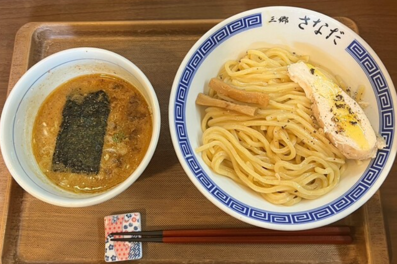 濃厚魚介豚骨つけ麺で人気の「さなだ」。粘度のあるスープに極太麺を絡めるスタイルで、ボリューム感も満点。麺量を調整できるため、大食いの方から少食の方まで幅広く楽しめます。スープ割りまでしっかり美味しいと評判です。