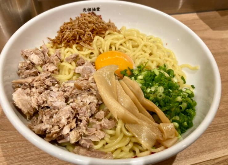 油そば専門店として人気の「濃厚鶏麺 ゆきかげ 三ノ輪店」。特製タレと香味油が効いた油そばは、しっかり混ぜて食べることで旨味が倍増。卓上の調味料で味変も楽しめ、最後まで飽きずに食べられるのが魅力です。