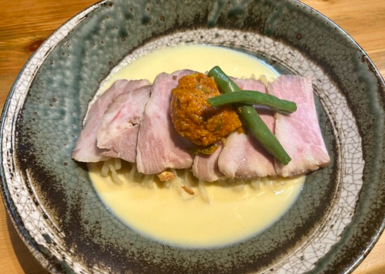 スタイリッシュな雰囲気と創作ラーメンで話題の「HIMIT」。動物系と魚介系を絶妙に掛け合わせたスープは奥深い旨味があり、上品な盛り付けと洗練された味わいが特徴です。従来のラーメン店とは一線を画すモダンな一杯を楽しめます。