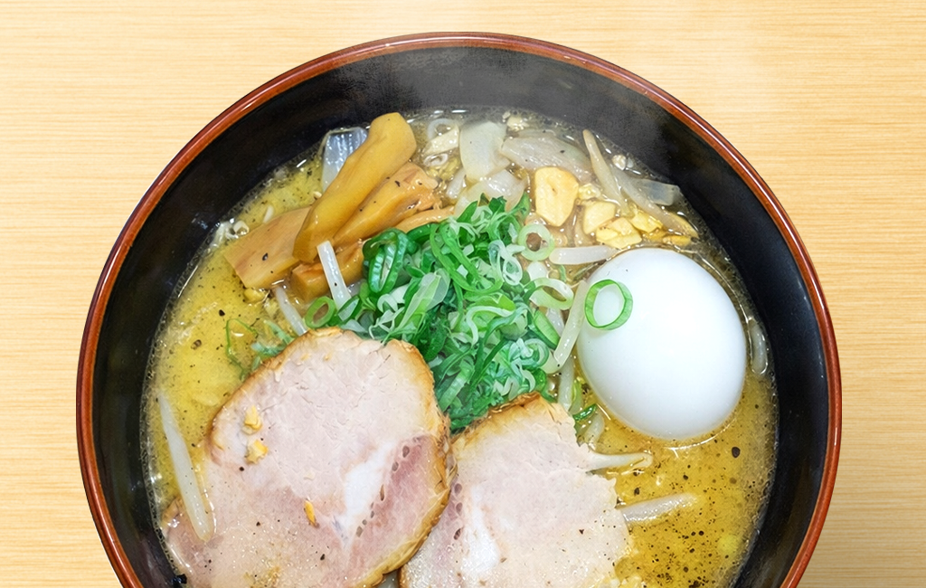 味噌ラーメンの名店「白樺山荘」。濃厚スープとこだわりの味玉が特徴で、札幌ラーメンを代表する一軒です。空港内でも本店同様の味を楽しめ、安定感ある人気を誇ります。寒い北海道で体を温めたい時にも最適です。