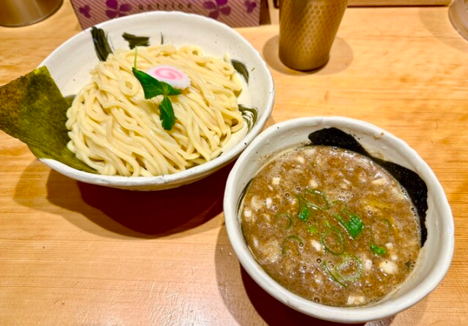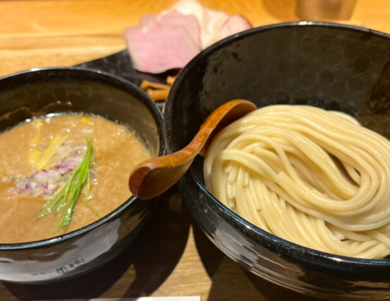 「朧月 本店」は、濃厚魚介豚骨つけ麺で有名な行列店。粘度のあるスープは魚介の香りと豚骨の旨味が融合し、極太麺に絡んで力強い味わいを楽しめます。チャーシューは分厚く柔らかで、つけ汁に浸すとさらに旨味が引き立ちます。深夜まで営業しているため、仕事帰りや飲み会後の〆ラーメンとしても人気。銀座・有楽町エリアのつけ麺好きなら必ず押さえておきたい一軒です。