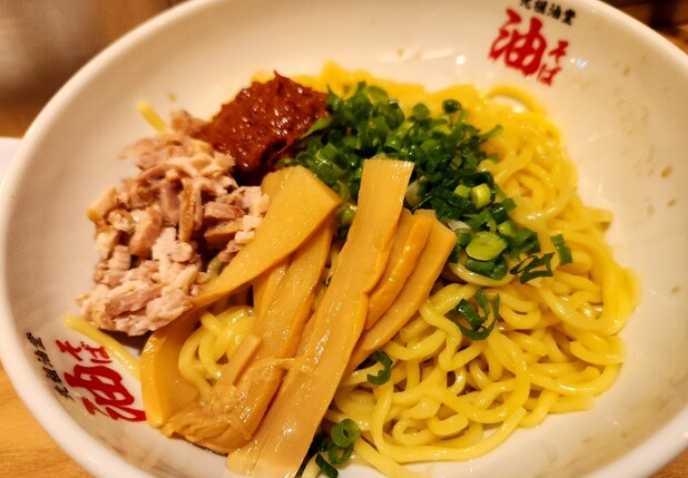 「元祖油堂 六本木店」は、油そば専門店として人気急上昇中のお店。特製のタレは醤油ベースに香味油を加え、濃厚でパンチの効いた味わいが特徴。太めでもちもちとした麺と絡めて食べる油そばは、ラーメンとは違う新しい満足感を味わえます。トッピングの自由度も高く、卵黄やマヨネーズ、チーズを加えて自分好みにカスタマイズ可能。六本木の中心地にあり、ランチ利用から夜の飲み会後の〆まで幅広く利用されています。油そば好きには必訪の一軒です。