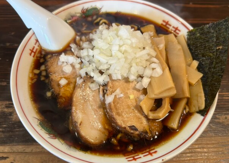 「竹岡式ラーメン竹徳」は、千葉県発祥の竹岡式ラーメンを南砂町で味わえるお店。特徴は、醤油ダレに乾麺を直接茹でたスープを合わせる独特の製法にあります。見た目は濃い醤油色ですが、意外にもまろやかで飲みやすいのが竹岡式の魅力。チャーシューの煮汁を活かした甘じょっぱい味わいがクセになり、刻み玉ねぎのトッピングがスープに爽やかな辛みを加えます。麺は中細でスープにしっかり絡み、素朴ながらも個性的な一杯。千葉発祥のご当地ラーメンを都内で試したい方におすすめです。