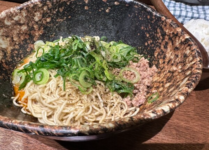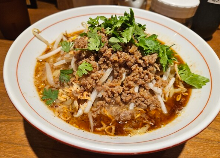 「担々飯店」は、竹橋エリアで気軽に本格的な担々麺を楽しめる人気店。胡麻の香り豊かなスープに自家製ラー油が加わり、コクと辛味が絶妙に調和した一杯が魅力です。花椒のシビれるような風味も程よく効いており、辛さだけでなく奥深い旨味を堪能できます。麺は中細のストレートで、濃厚なスープをしっかり持ち上げ、最後まで飽きずに楽しめるのが特徴。トッピングには肉味噌や青菜が添えられ、彩りも豊かで食欲をそそります。辛さの調整が可能なため、辛いもの好きはもちろん、初心者にもおすすめ。ランチタイムは多くのビジネスマンで賑わい、気軽に立ち寄れる点も人気の理由です。