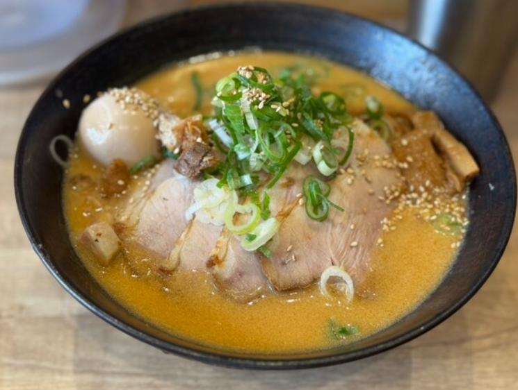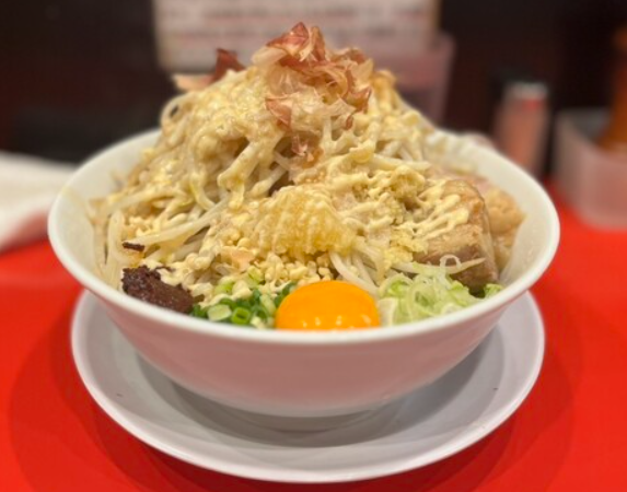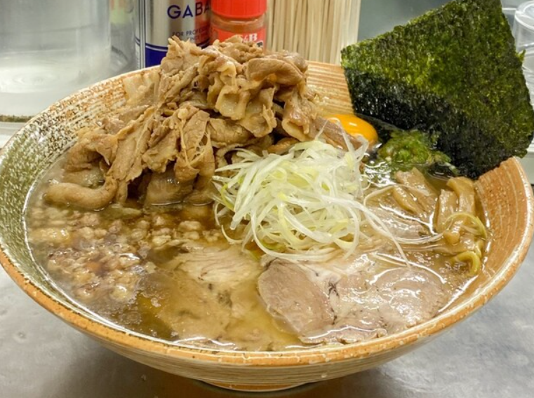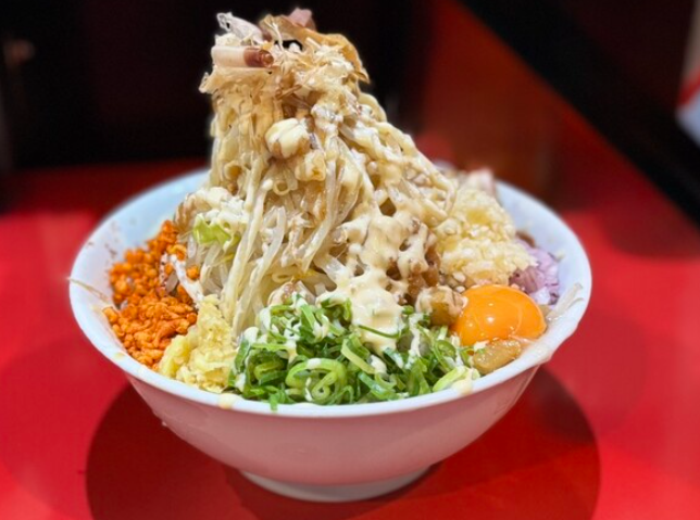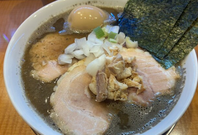 「覆麺 智」は、個性的で中毒性のある一杯を提供する竹橋エリア屈指の人気店です。特徴的なのは黒胡椒を効かせたパンチのあるスープで、濃厚な醤油ベースにスパイス感が加わり、クセになる味わいが魅力。トッピングのチャーシューは分厚くジューシーで食べ応え十分です。さらに煮卵や野菜のバランスも良く、見た目の迫力も印象的。限定メニューや日替わりの特製ラーメンもあり、常連客を飽きさせない工夫がされています。店名通り覆面をつけたスタッフが迎えてくれるユニークな演出も話題です。