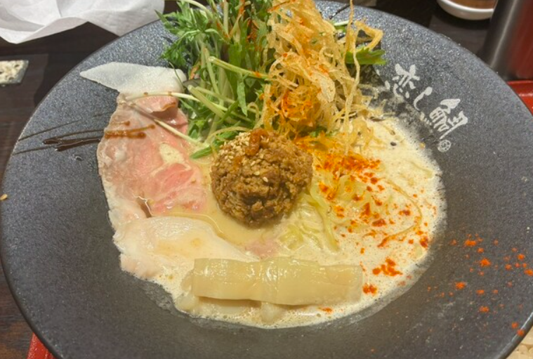 「鯛担麺専門店 恋し鯛」は、九段下駅近くで鯛を使った独自の担々麺を楽しめる専門店です。鯛の旨味を凝縮したスープは濃厚ながらも上品で、辛さと香ばしさのバランスが絶妙。中太のストレート麺がスープと絡み、食べ応えのある一杯に仕上がっています。チャーシューや味玉、野菜のトッピングも丁寧に仕上げられており、見た目の美しさも印象的です。ランチタイムは地元のサラリーマンで賑わい、リピーターも多い人気店です。季節限定の特製麺もあり、何度訪れても新しい味を楽しめます。