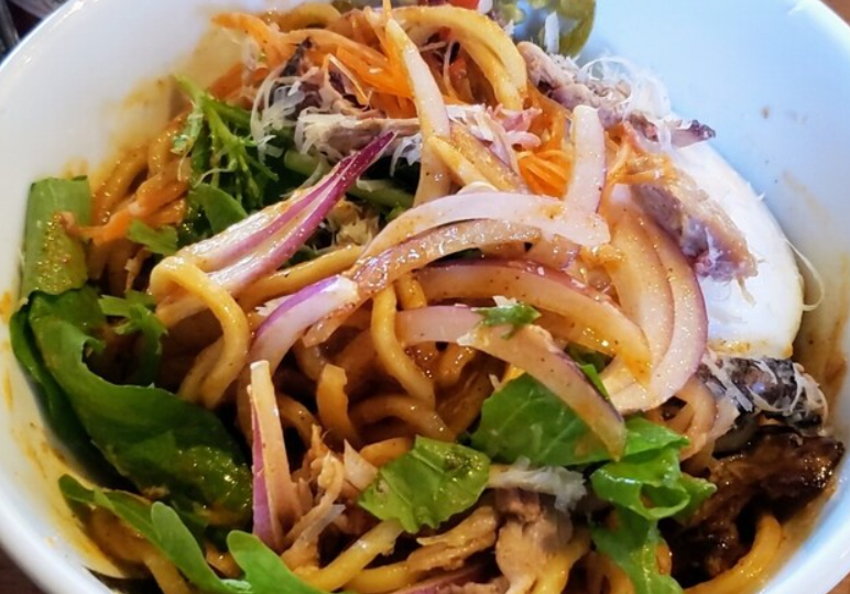 「油そば 油虎」は、つくば駅周辺で人気の油そば専門店です。濃厚なタレと油を絡めた中太ストレート麺に、チャーシュー、メンマ、ネギ、味玉など丁寧に盛り付けられています。カウンター席中心の落ち着いた店内で、ランチやディナーにはラーメンファンや地元客で賑わいます。油そばならではのコクと旨味を存分に楽しめる、リピーターの多い名店です。