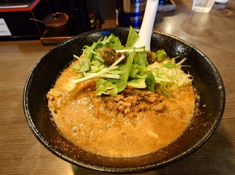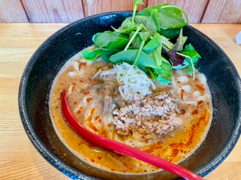 「担々麺 胡麻」は、濃厚ゴマスープと中細ストレート麺が特徴の草加駅周辺ラーメン店です。チャーシューや味玉、メンマ、ネギなどトッピングも丁寧に盛り付けられ、辛味と旨味が絶妙に調和した一杯を楽しめます。ランチやディナータイムには地元客で賑わう人気店です。